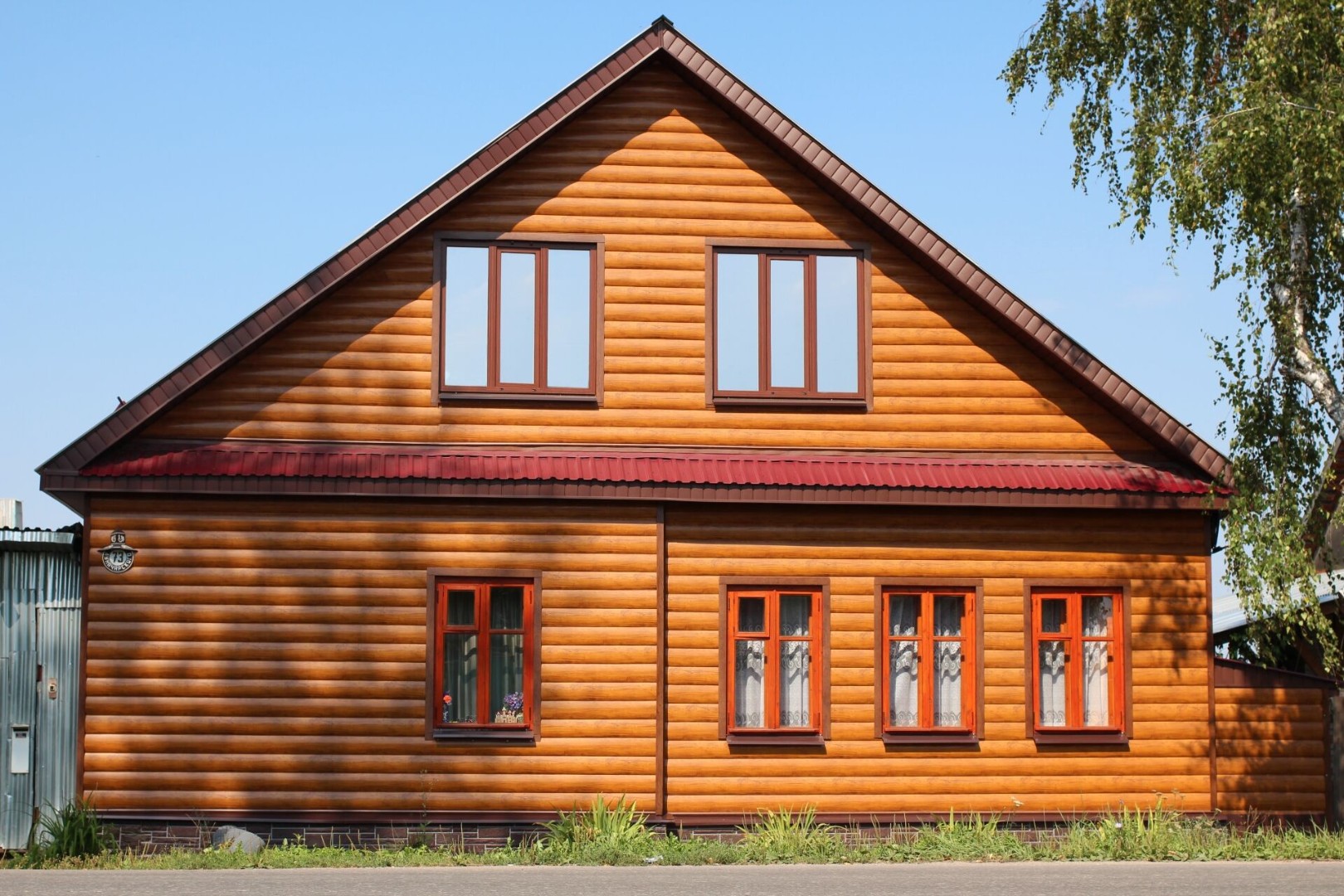 Металлический сайдинг «Блок-хаус New GL» – это облицовочный материал, предназначенный для обшивки фасадов жилых и промышленных объектов. В сочетании с покрытием Colority® Print сайдинг «Блок-хаус New GL» имитирует внешний вид деревянного бруса, что придает натуральный вид фасаду. Особая геометрия панелей «Блок-хаус New GL» исключает возможность попадания влаги в замок на стыке панелей, а значит, дом сохранит неизменный внешний вид на долгие годы.