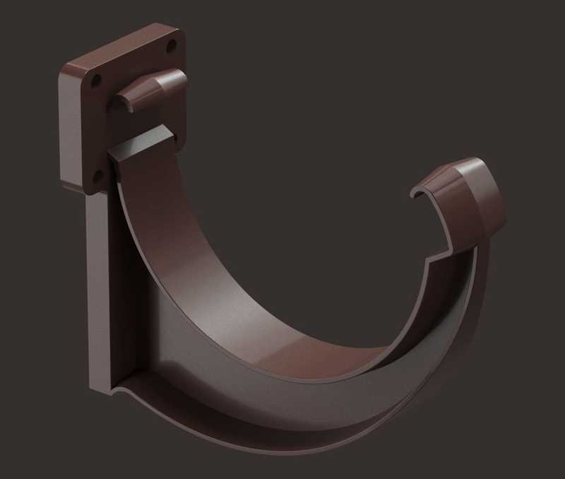 Предназначен для крепления желоба на кровлях с лобовой доской, либо в комплекте с удлинителем на кровлях без лобовой доски