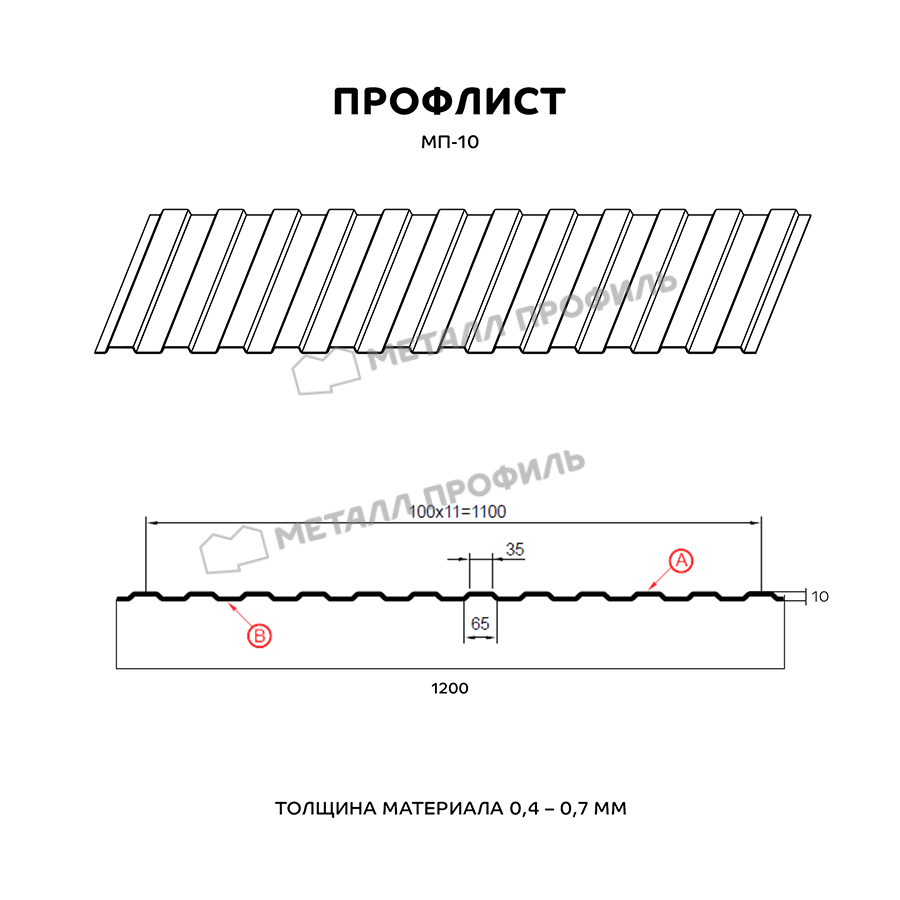 Один из популярных в Обнинске видов профнастила категории «стеновой». Он характеризуется небольшой глубиной волны – 10 мм и одинаковым с обеих сторон рисунком. пропорциям, МП-10 имеет широкую сферу применения. Чаще всего этот профнастил используется для создания различных ограждений, оборудования стен и перегородок, облицовки фасадов частных и торговых зданий, а также как материал подвесного потолка в индустриальных помещениях. При изготовлении профиля МП-10 используется высококлассная сталь холодного проката 0,4-0,7 мм толщиной. Металлическая основа покрывается цинком, а также обрабатывается полимерным составом. Финишное полимерное покрытие из ассортимента Компании Металл Профиль отлично впишется в цветовую палитру вашего объекта. Кроме того оно даст изделию дополнительную защиту от механических повреждений, ультрафиолета, влажности.