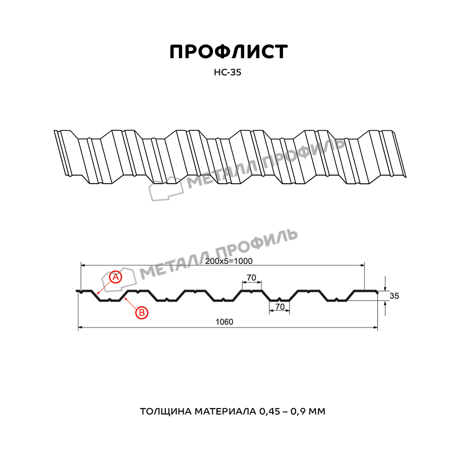Универсальный и выгодный стройматериал с симметричным профилем. Пометка НС значит, что профлист является и «несущим», и «стеновым». Он пользуется популярностью как при строительстве частных домов, так и при возведении крупных объектов. Из профилированного листа с глубиной волны в 35 мм получаются конструкции абсолютно разного плана: обустройство кровли, быстровозводимые сооружения ( павильоны, навесы ), ограждения частных и общественных территорий, каркасные здания ( цеха, торговые центры, склады ). Хорошую способность выдерживать нагрузки НС-35 придают дополнительные рёбра жёсткости, которые расположены с обеих сторон листа. Полезная ширина этого профиля достигает 1000 мм при номинальной ширине 1060 мм, получается, что при установке этого металлопрофиля в боковое соединение скроется 60 мм. Толщина металла может быть выбрана в диапазоне от 0,5 до 0,9 мм – это влияет не только на механическую стойкость стройматериала, но и его вес. Полимерное покрытие из каталога Компани Металл Профиль придаст профлисту дополнительную стойкость к коррозии и солнечному излучению.